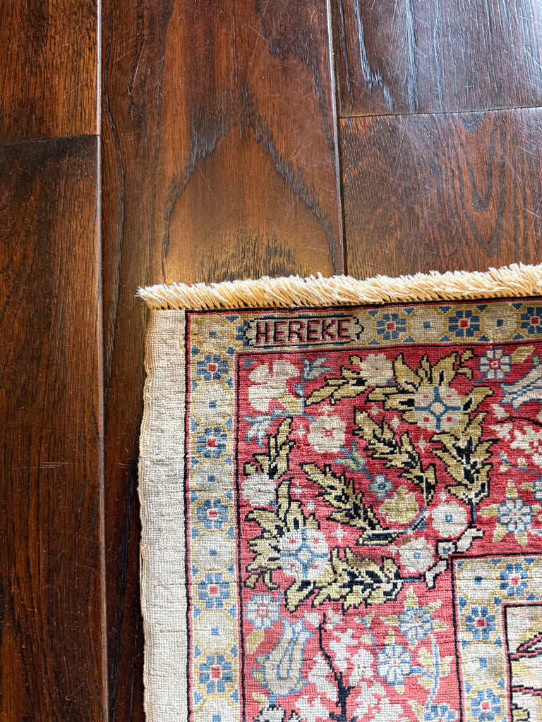 Antique Superfine signed Turkish Herekeh Silk Rug